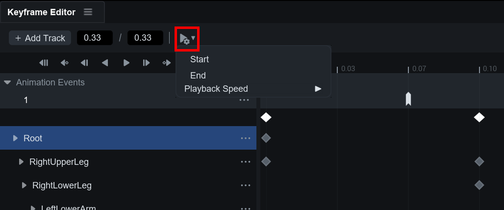 * **Add Reset Keyframe Here** : 애니메이션 정보가 초기화된 키프레임을 이 위치에 추가합니다.