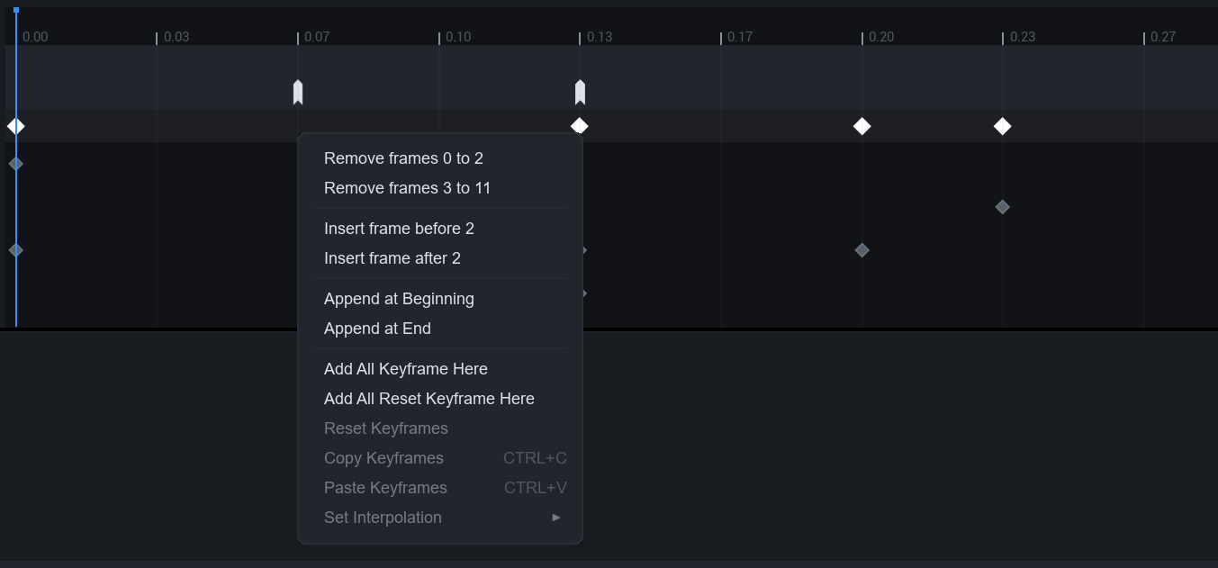* **Add All Keyframe Here** : 이전 키프레임과 동일한 키프레임을 이 위치에 추가합니다.