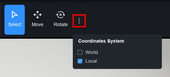 표시한 버튼을 눌러 선택한 본의 좌표축 편집 기준을 World나 Local로 변경할 수 있습니다.