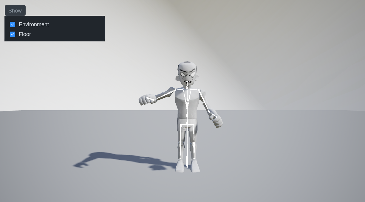**Show 토글**을 통해 배경과 바닥의 표시 여부를 설정할 수 있습니다.