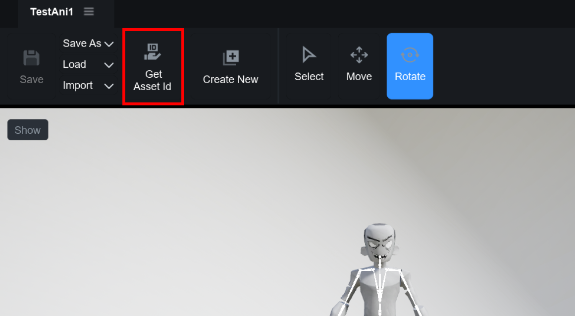 제작한 애니메이션은 **Get Asset Id 버튼**을 눌러, 서버에 등록할 수 있습니다.