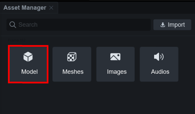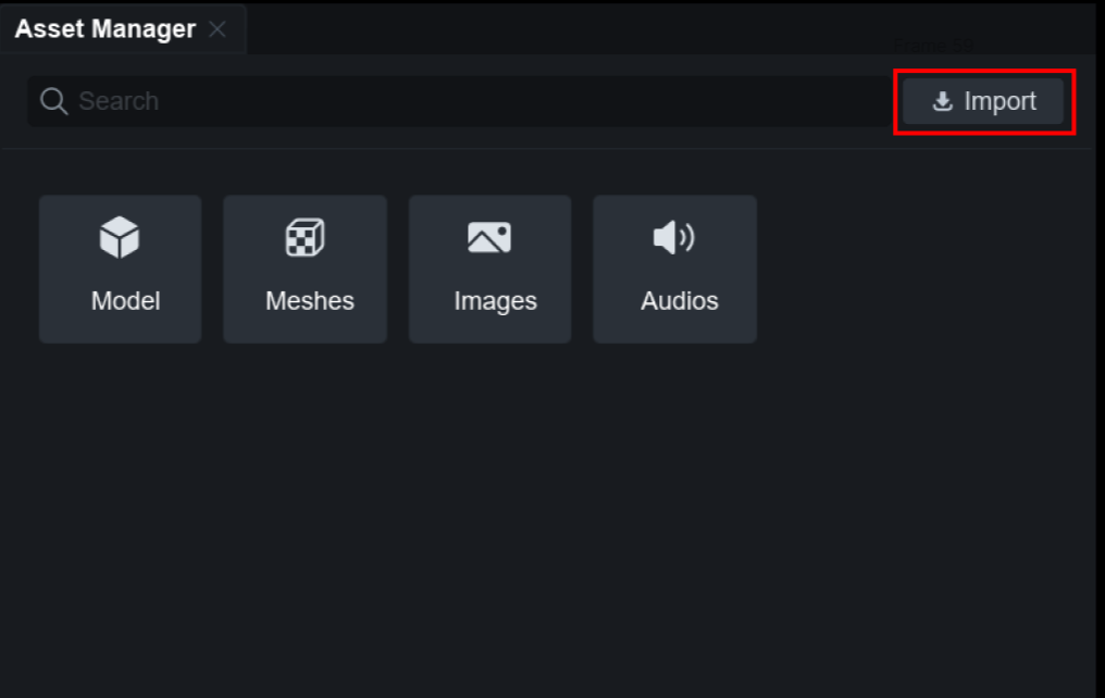 또는 **Asset Manager 패널**에서도 **Import 버튼**을 눌러 진행할 수 있습니다.