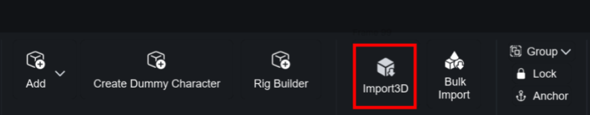 Import3D 버튼을 눌러 제작한 애니메이션 FBX 파일을 가져옵니다.