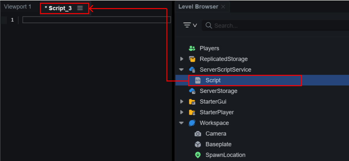 OVERDARE Studio의 스크립트 에디터는 스크립트 작성을 위한 필수 도구로, 코드를 손쉽게 작성할 수 있도록 설계되었습니다. 이를 통해 개발 과정을 효율적으로 관리하고, 작업 시간을 효과적으로 단축할 수 있습니다.