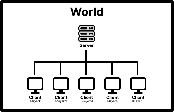 * The **server** manages the global state of the game and acts as the **central system** that handles communication with all clients (players).