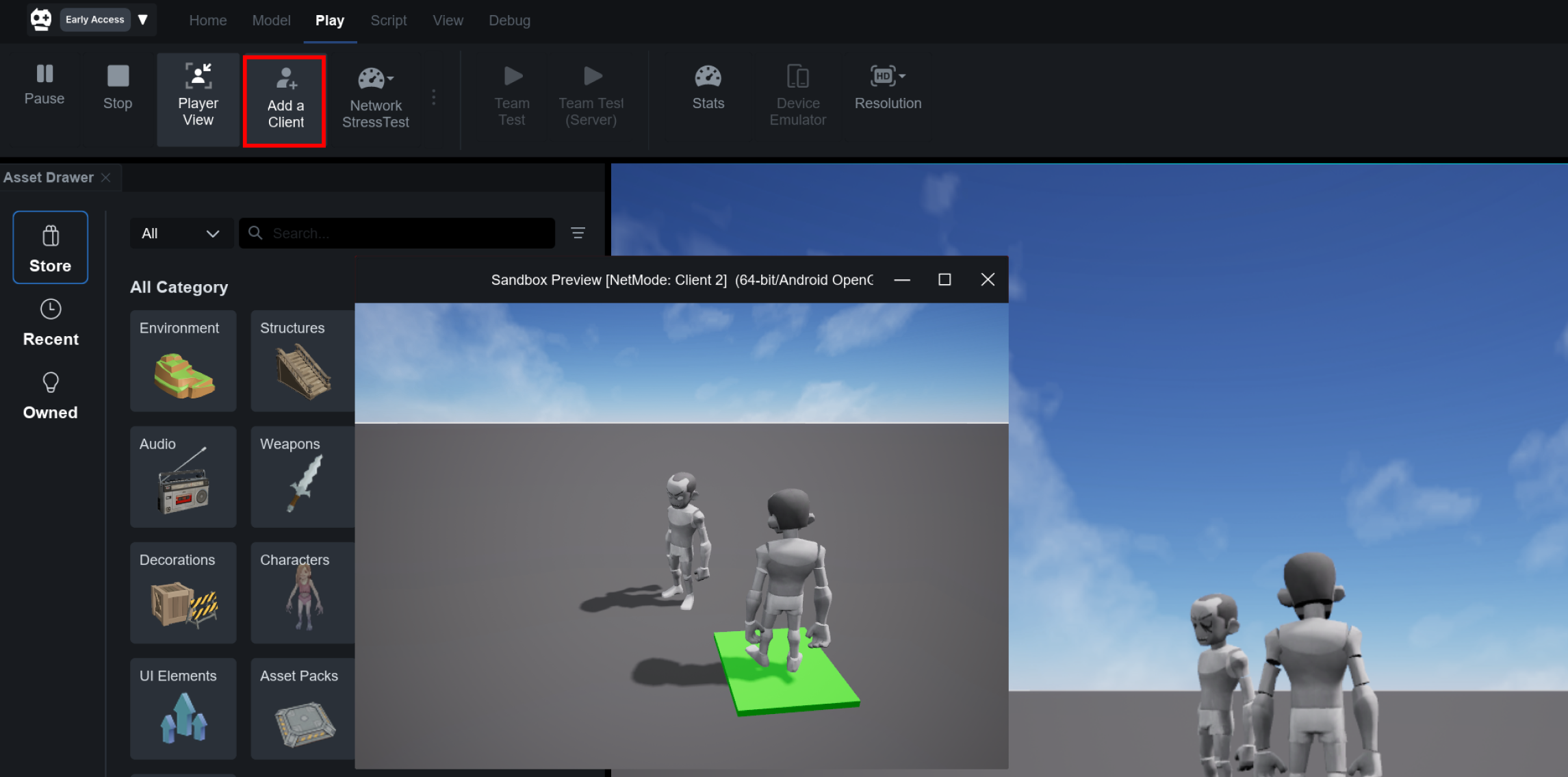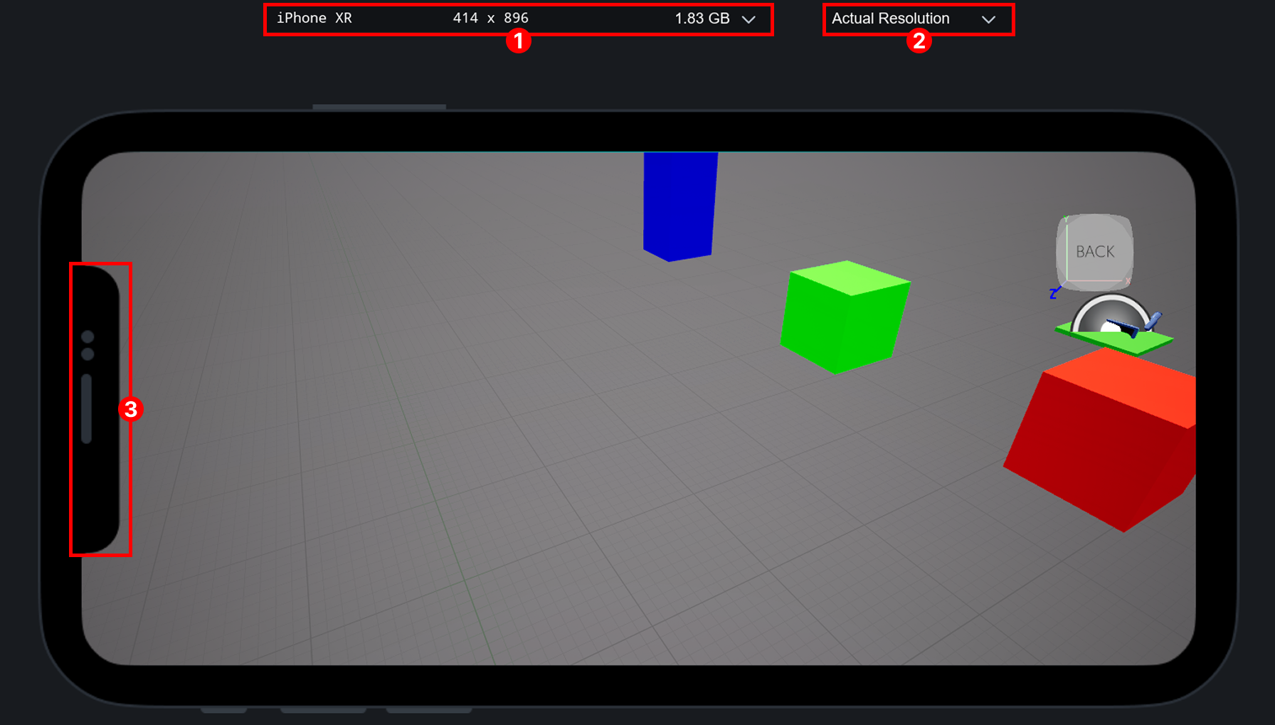 In the Studio, a mobile device environment can be emulated virtually for testing, allowing you to preview how system UI, joysticks, jump buttons, and GUIs appear in an actual mobile environment.