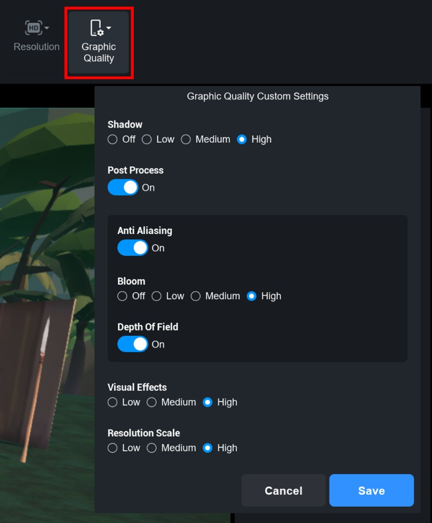 <figure><img src="https://2064130887-files.gitbook.io/~/files/v0/b/gitbook-x-prod.appspot.com/o/spaces%2FhrvYlLq1mQAq0V0vwPsb%2Fuploads%2Fgit-blob-5ed55ae110b1a02937be076674147a9d38d2c27a%2Fstudio-playtest-graphic-quality.png?alt=media" alt=""><figcaption></figcaption></figure>
